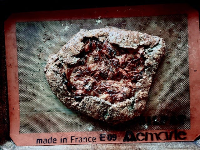 Galette season continues! Here’s one I made with a buckwheat flour1 crust and spicy cabbage filling.