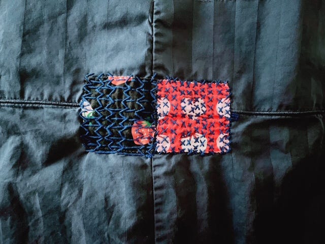 I fixed this pillowcase with two pre-cut fabric squares from Ruby Star Society. You can get them here in all sorts of patterns if you’re interested.
